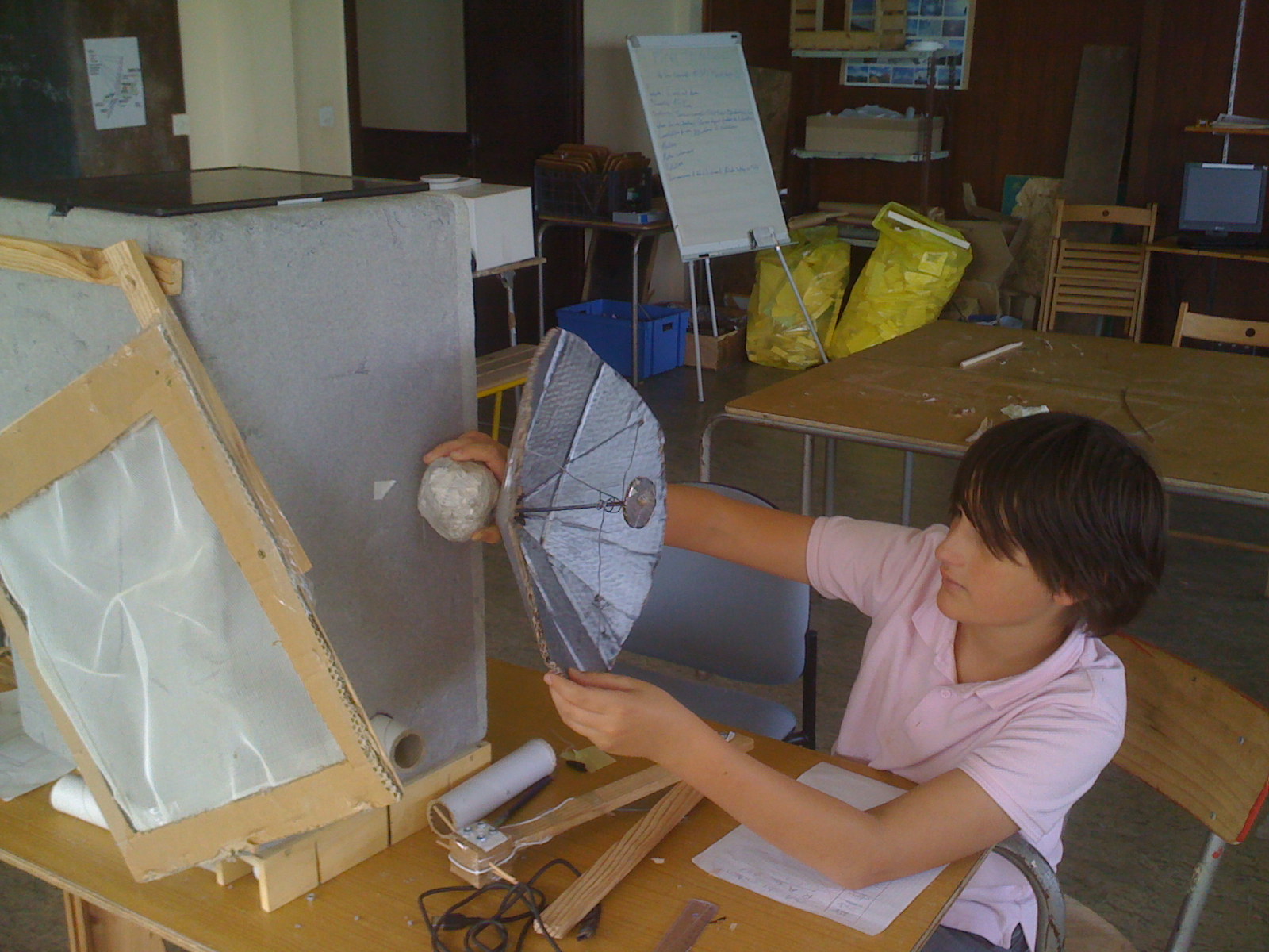 Les connaissances de Jérôme l’astronome sont immenses, ils nous explique ce que sont les watts, les volts, les ohms, les hertz, le courant alternatif et le courant continu,le rapport entre la puissance d’une batterie, sa capacité et son poids (important pour nous avec la problématique du choix de l’énergie à embarquer sur notre sonde). Grâce aux appareils de mesure, Jérôme l’astronome nous fait toucher du doigt toutes les possibilités de tests, de rechargement, de contrôle autant pour les batteries que pour les panneaux solaires et photovoltaïques. C’est un super atelier sur les énergies durables que nous vivons ce matin. Merci Jérôme l’astronome !
